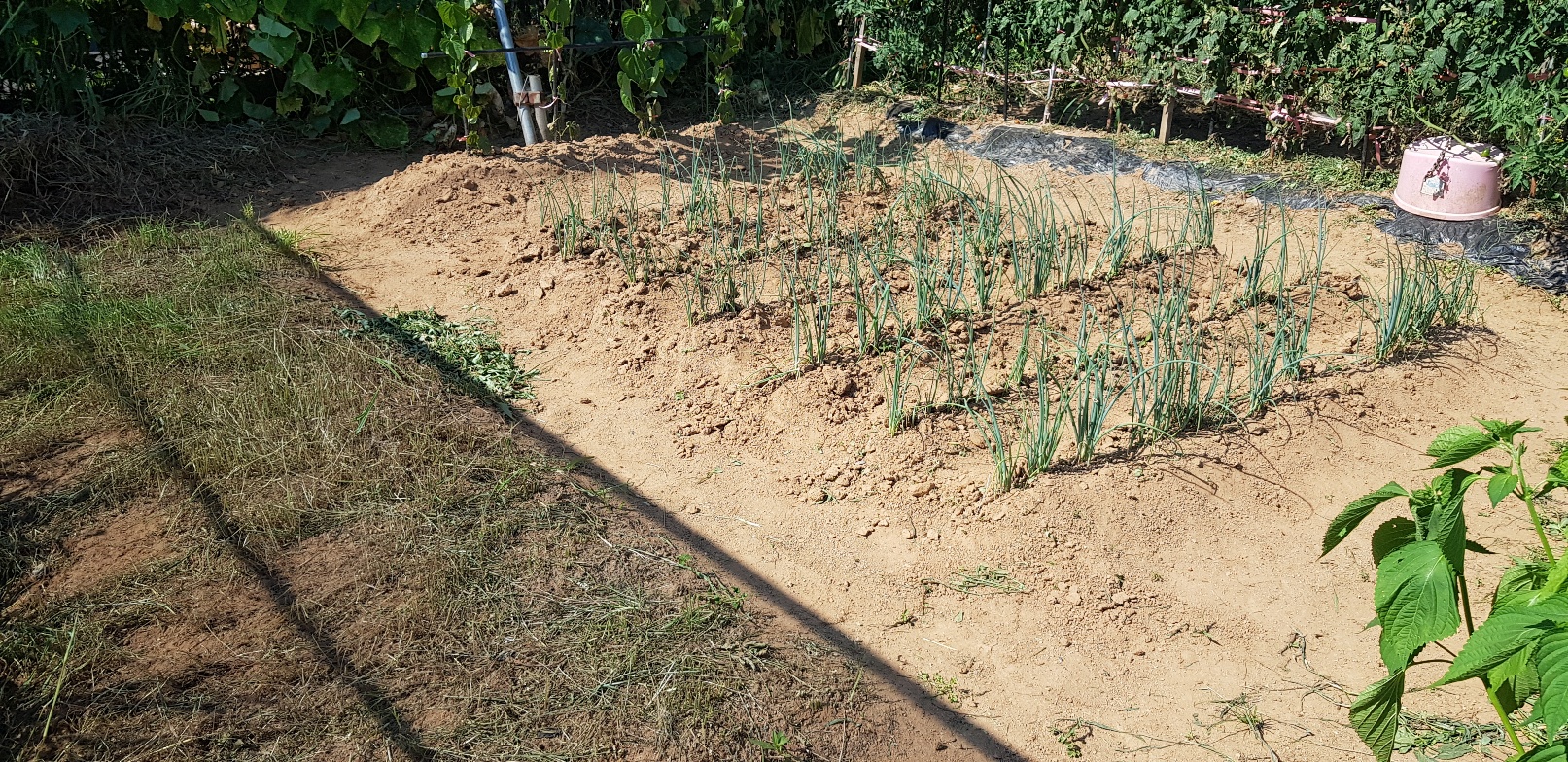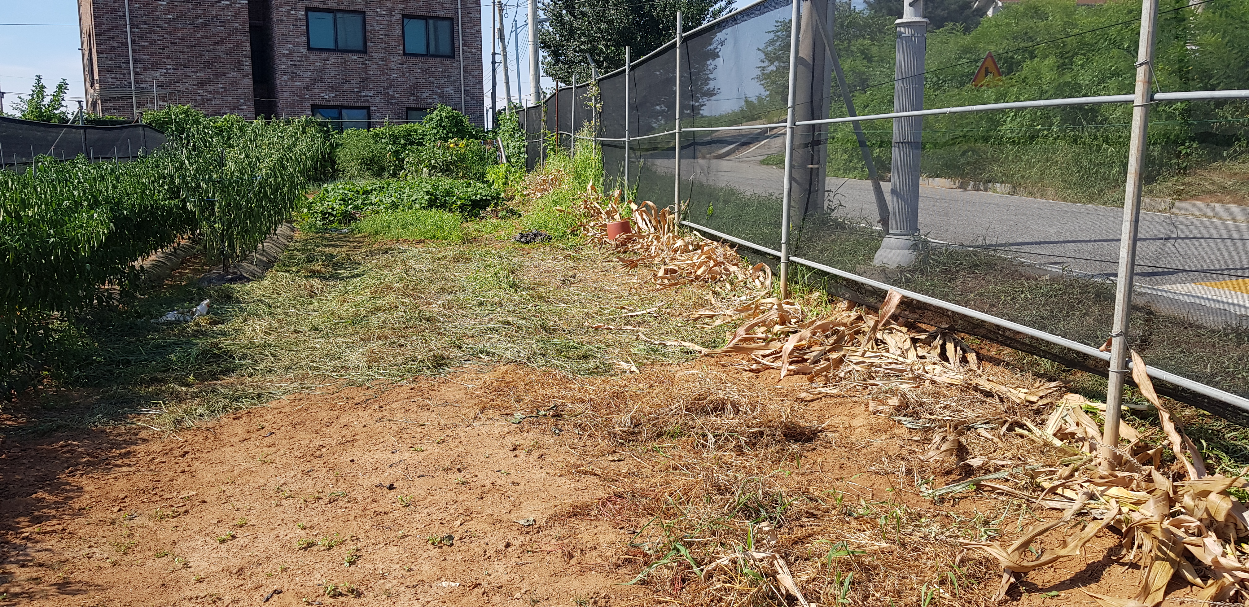 뽑을 엄두가 안나 ..낮으로 풀을 베어```그밑에 깔아 둔다