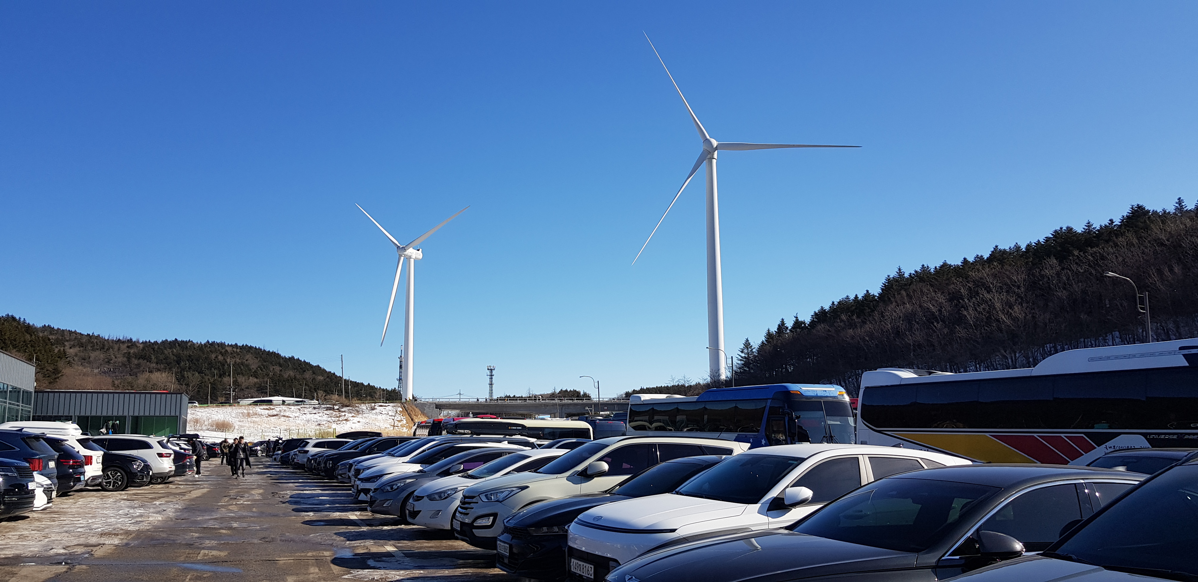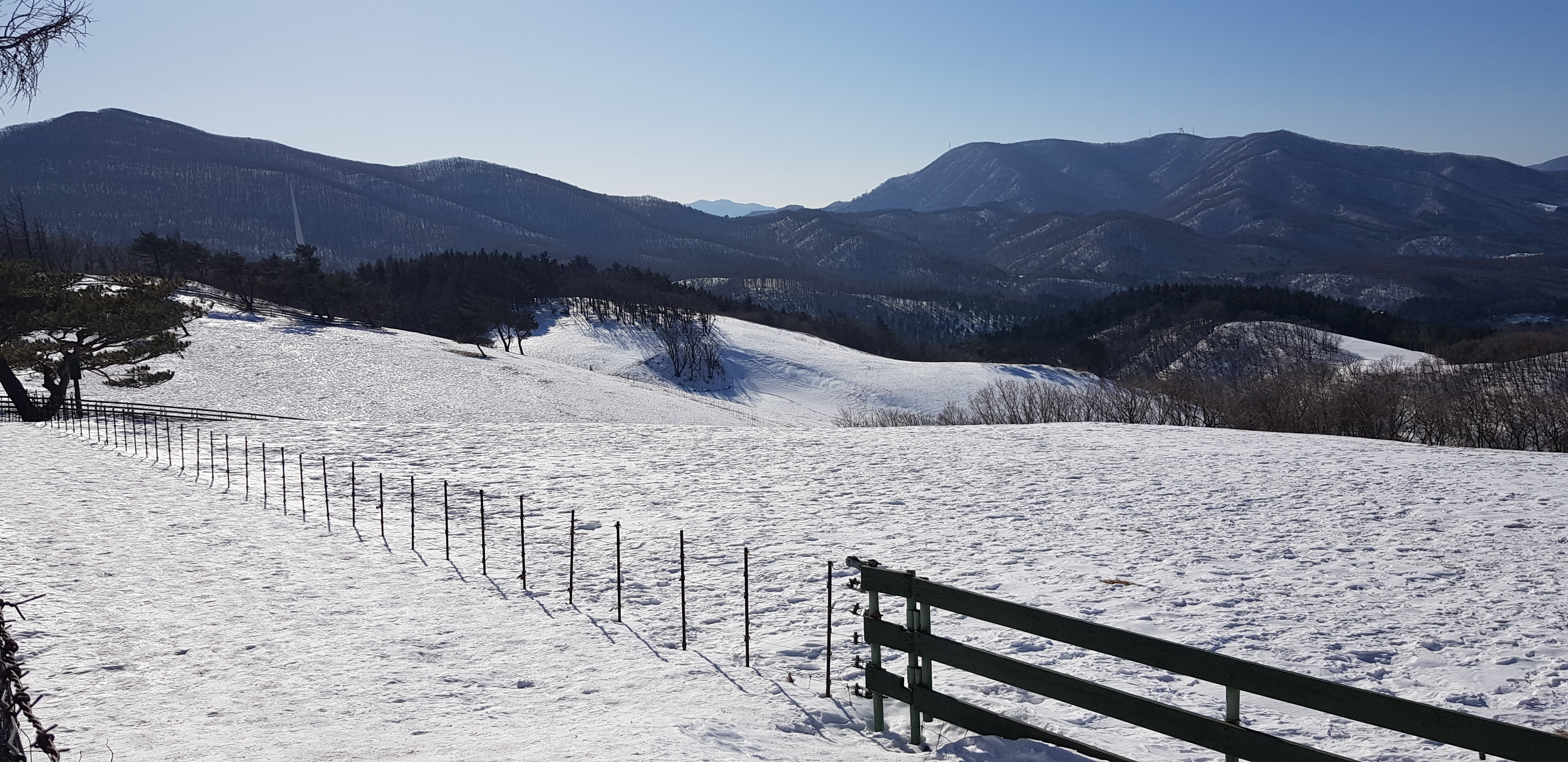 한쪽으로는 삼양대관령목장의 경관이 바라보여 이색적이다.